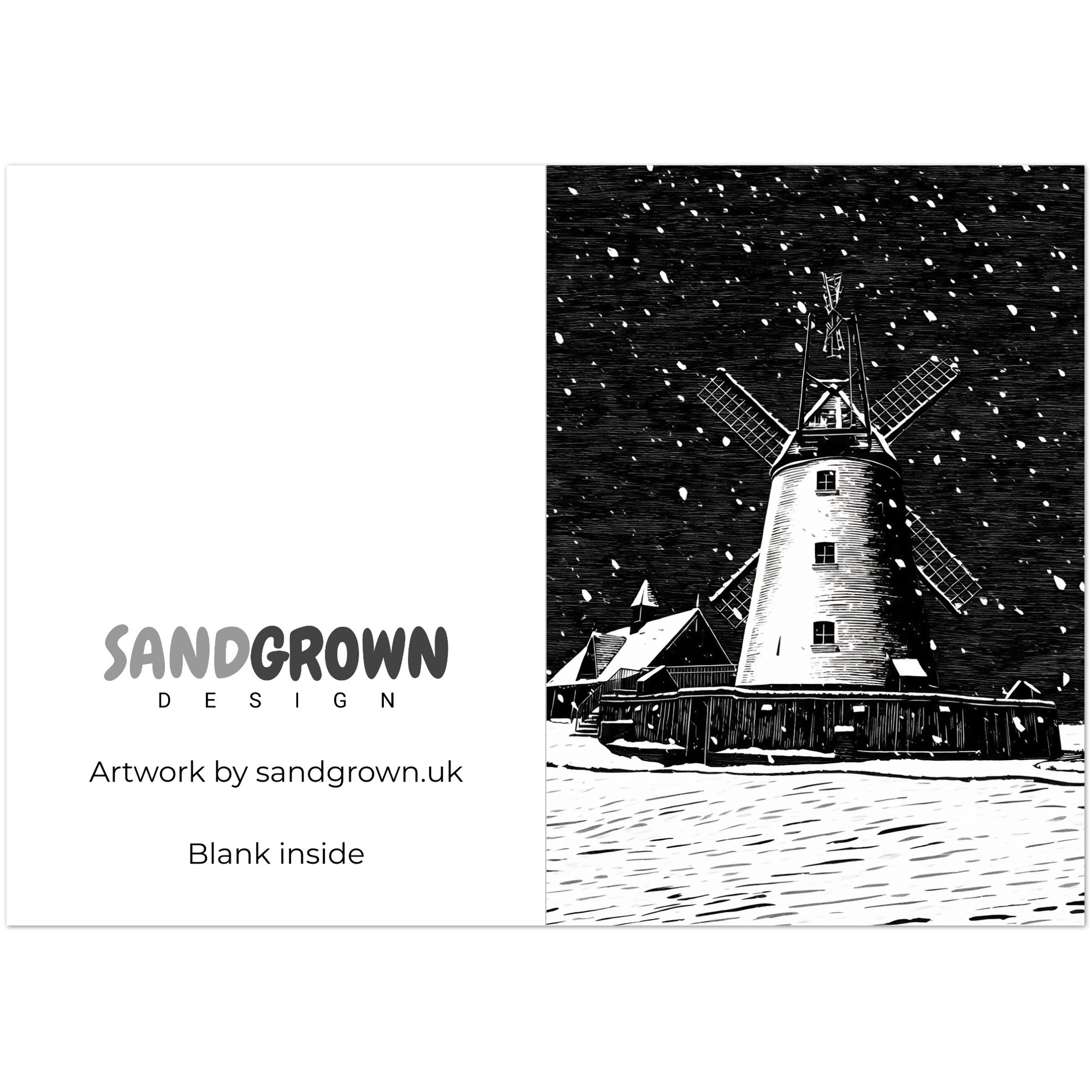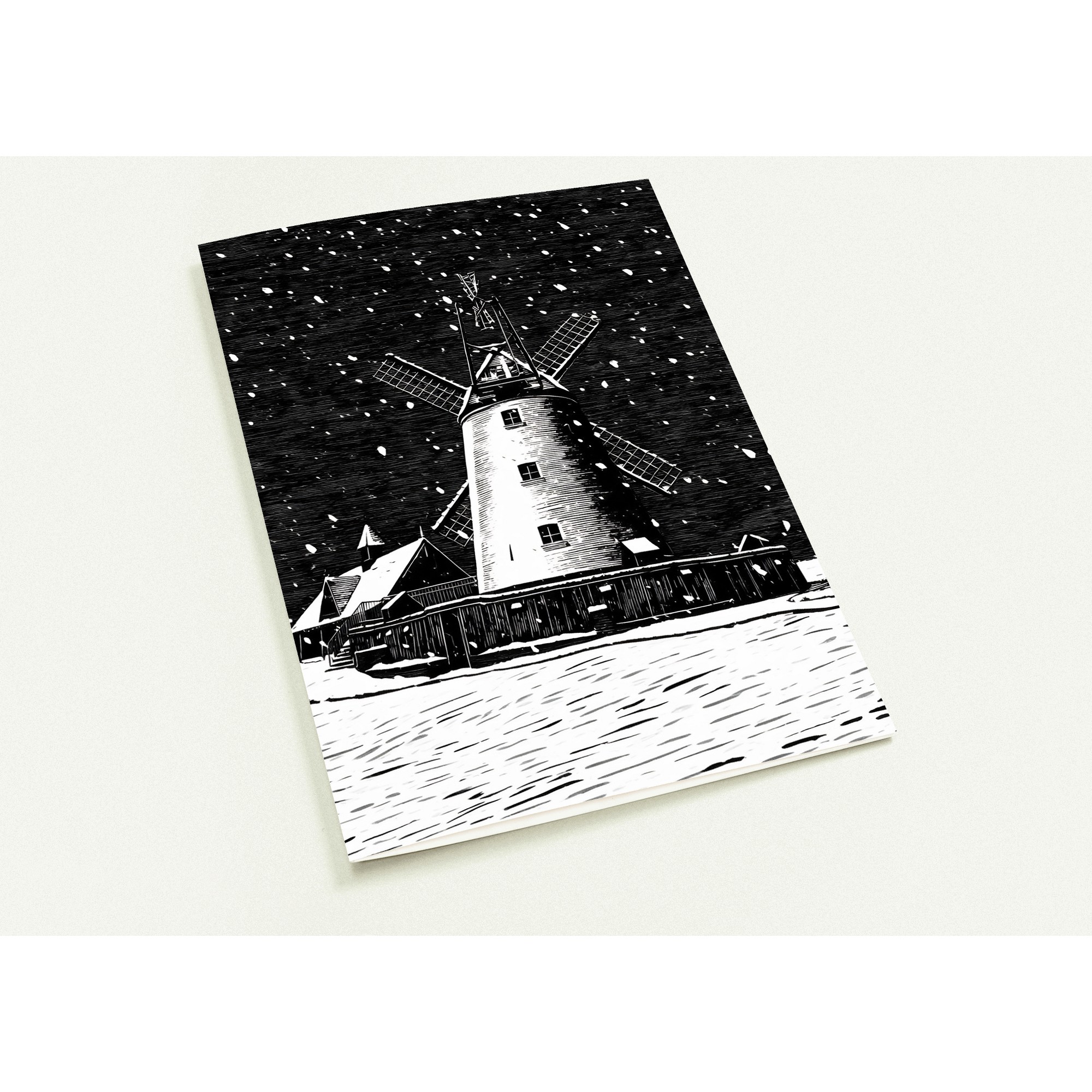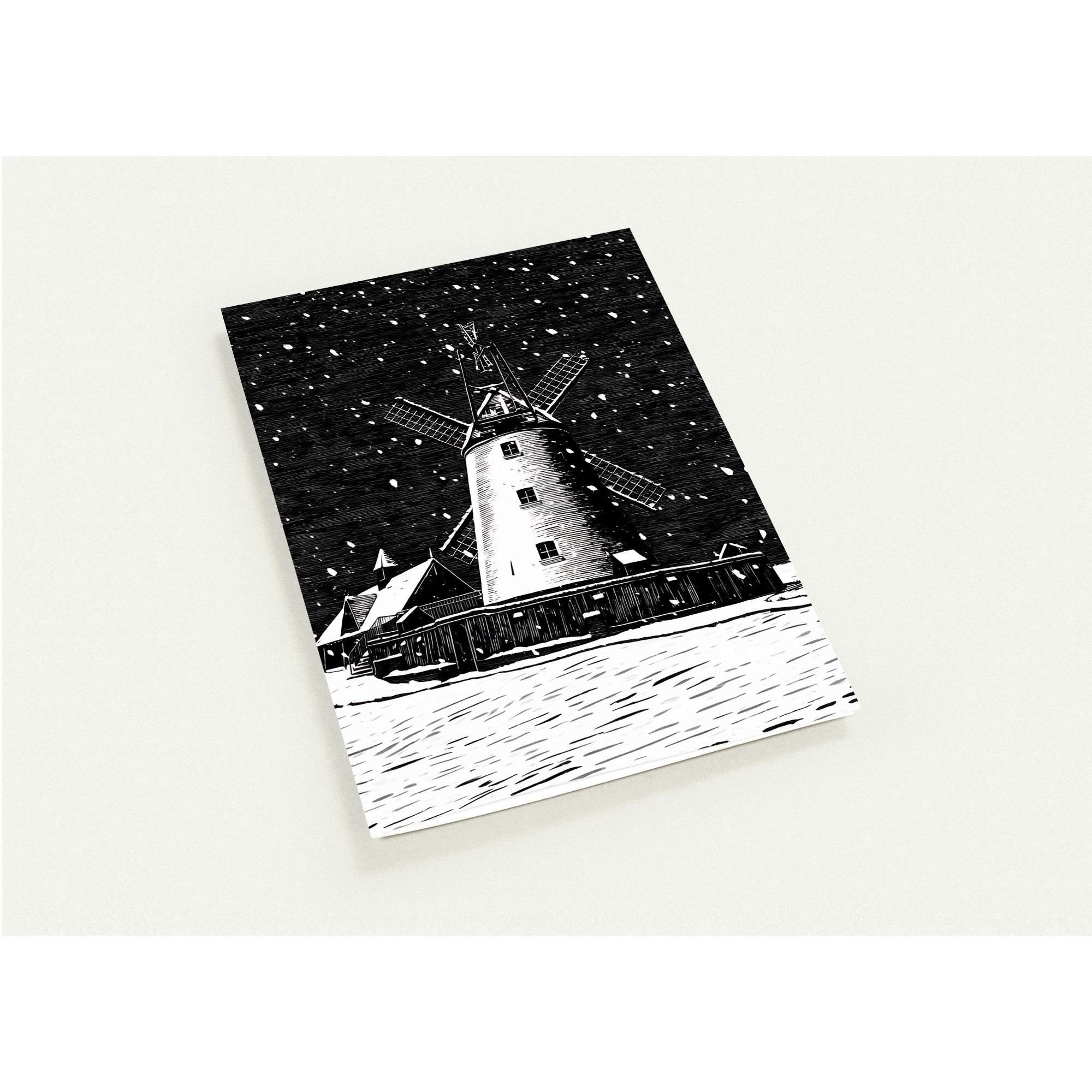 Create unforgettable memories with our stunning pack of 10 greeting cards featuring a beautiful woodcut design of Lytham Windmill in the snow. Perfect for sending season’s greetings, thank you notes, or heartfelt messages, these cards are a unique way to express your sentiments this holiday season or any occasion.