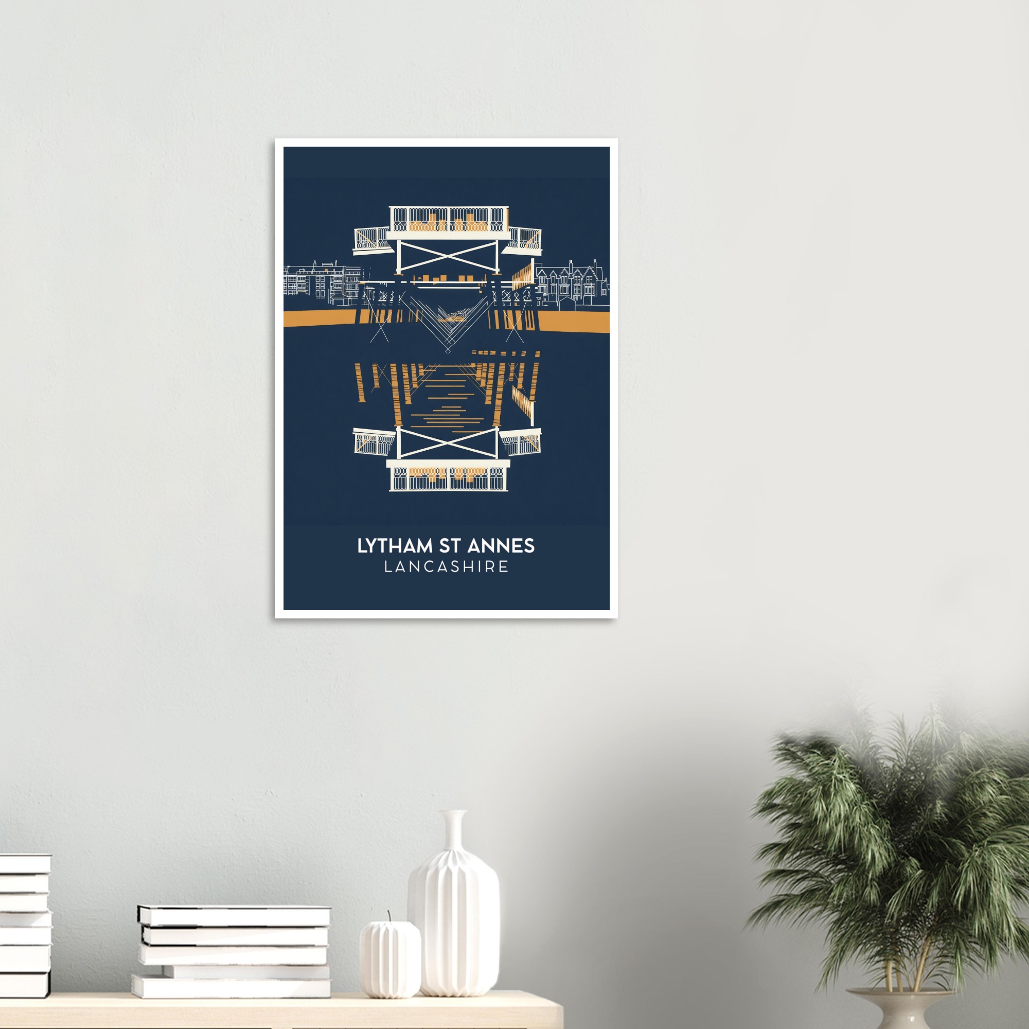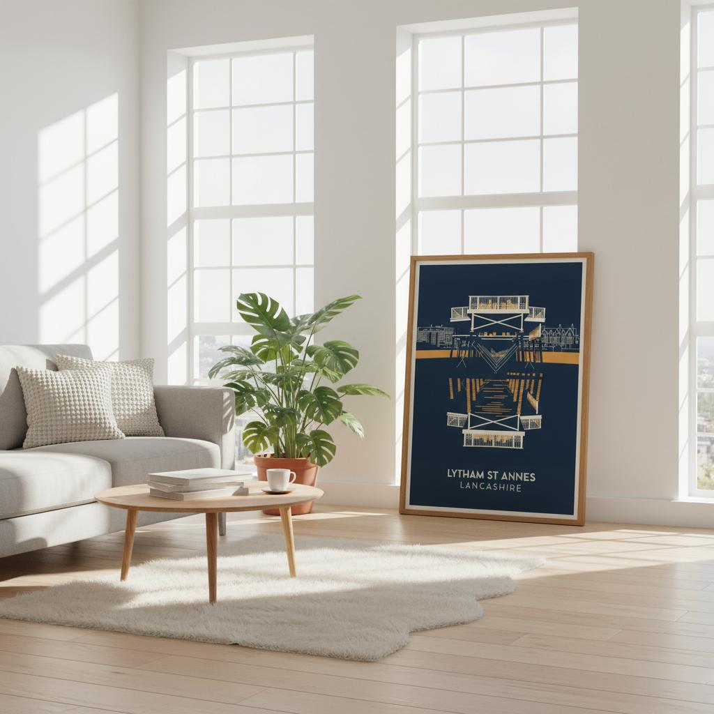Available in 29 different sizes, you can choose the perfect fit for any wall. Whether you want to create a statement piece above your living room sofa, or a subtle accent in your bedroom, our St Annes Pier Poster is versatile enough to suit any interior. Plus, with no minimum orders and print-on-demand services, you can order exactly what you need without any waste.