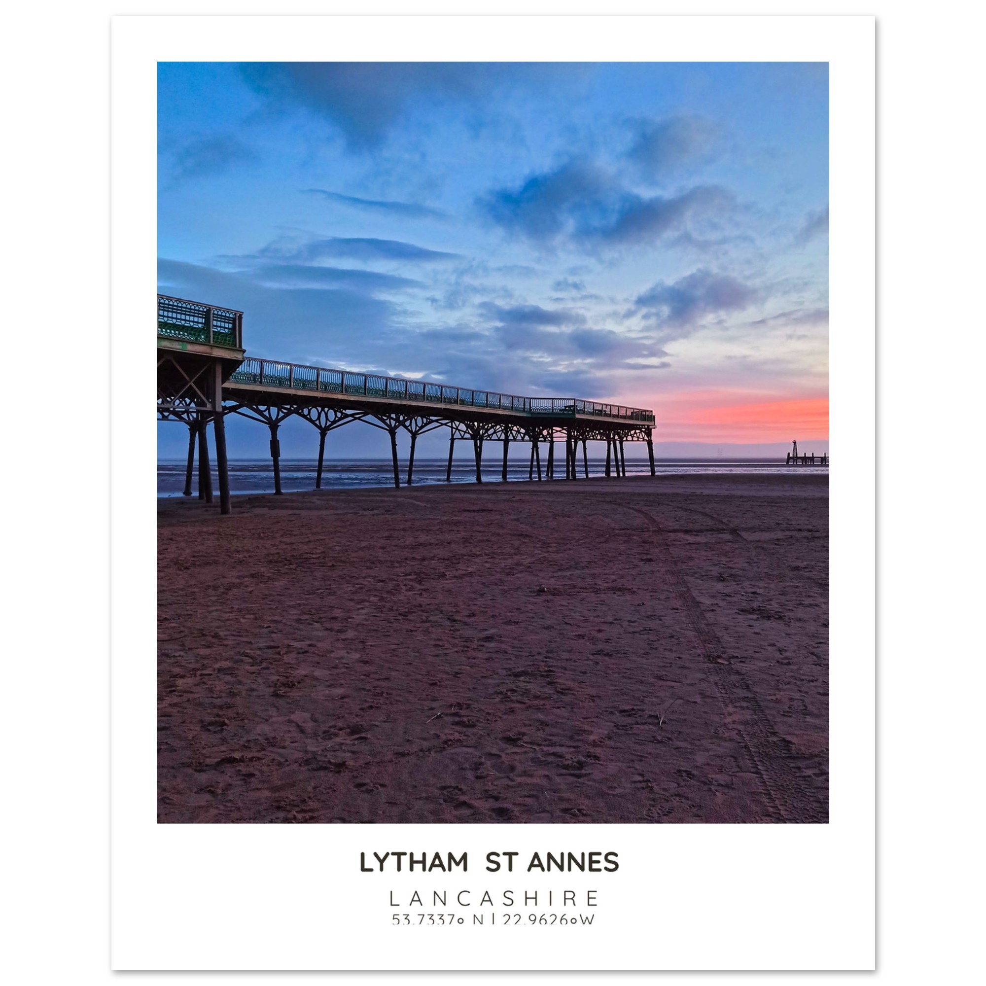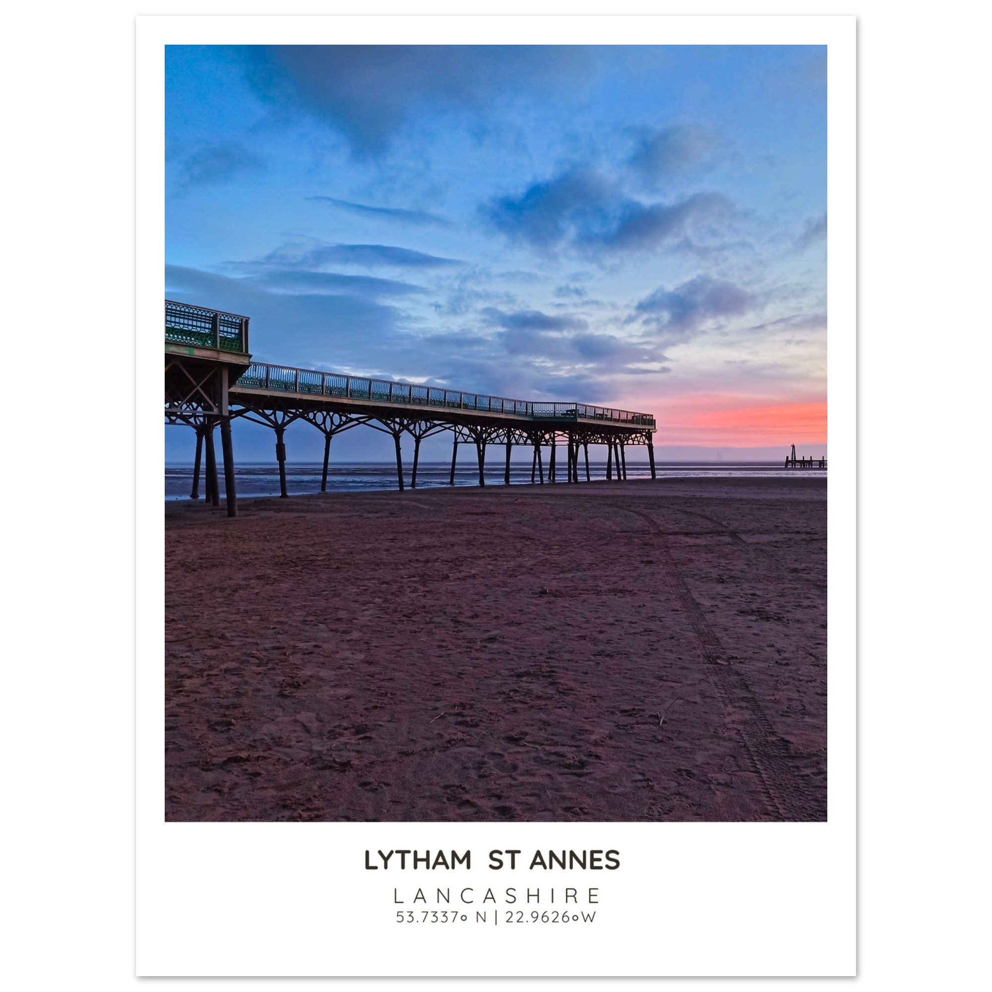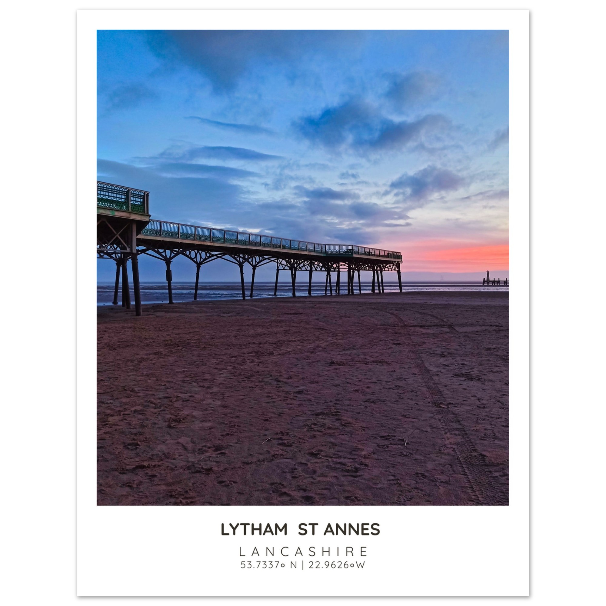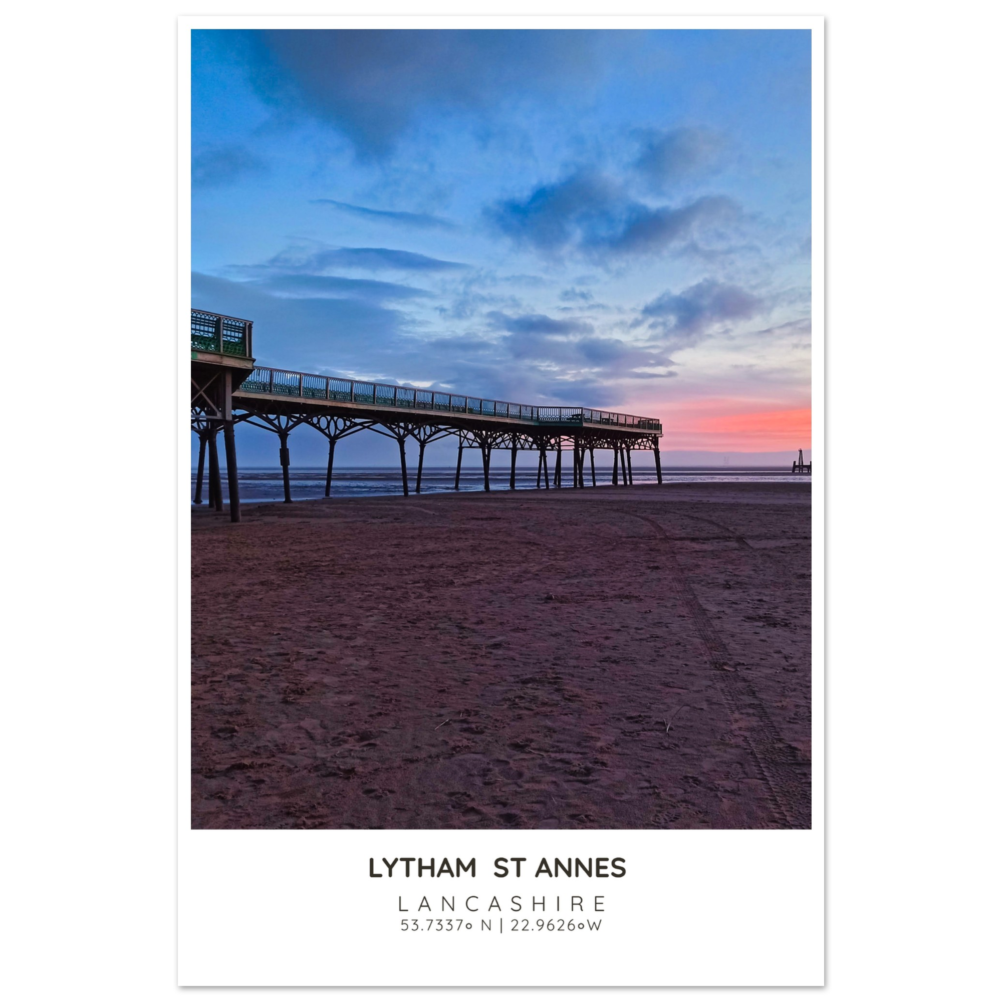 Bring the serene beauty of St Annes Pier and Beach into your home with our exquisite photographic poster. This stunning wall art captures the enchanting interplay of Lancashire’s vibrant sky and tranquil waters, making it a perfect addition to any coastal-themed decor. Whether you’re looking to brighten up your living room, bedroom, or hallway, this print adds a touch of elegance and seaside charm to your space.