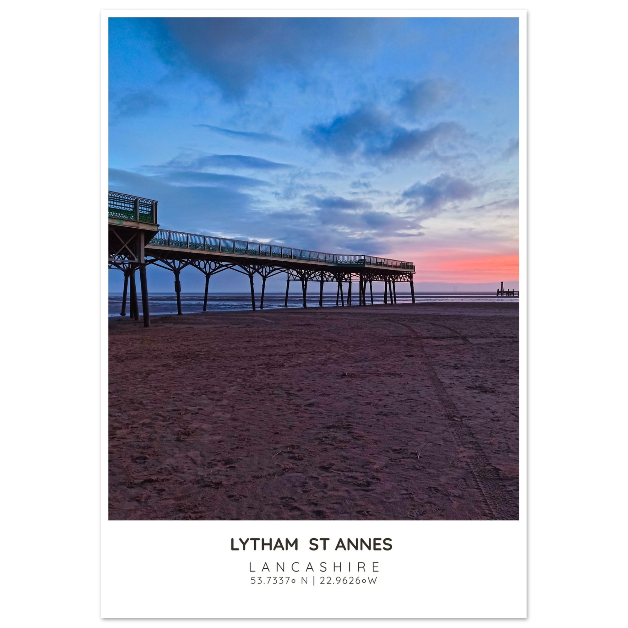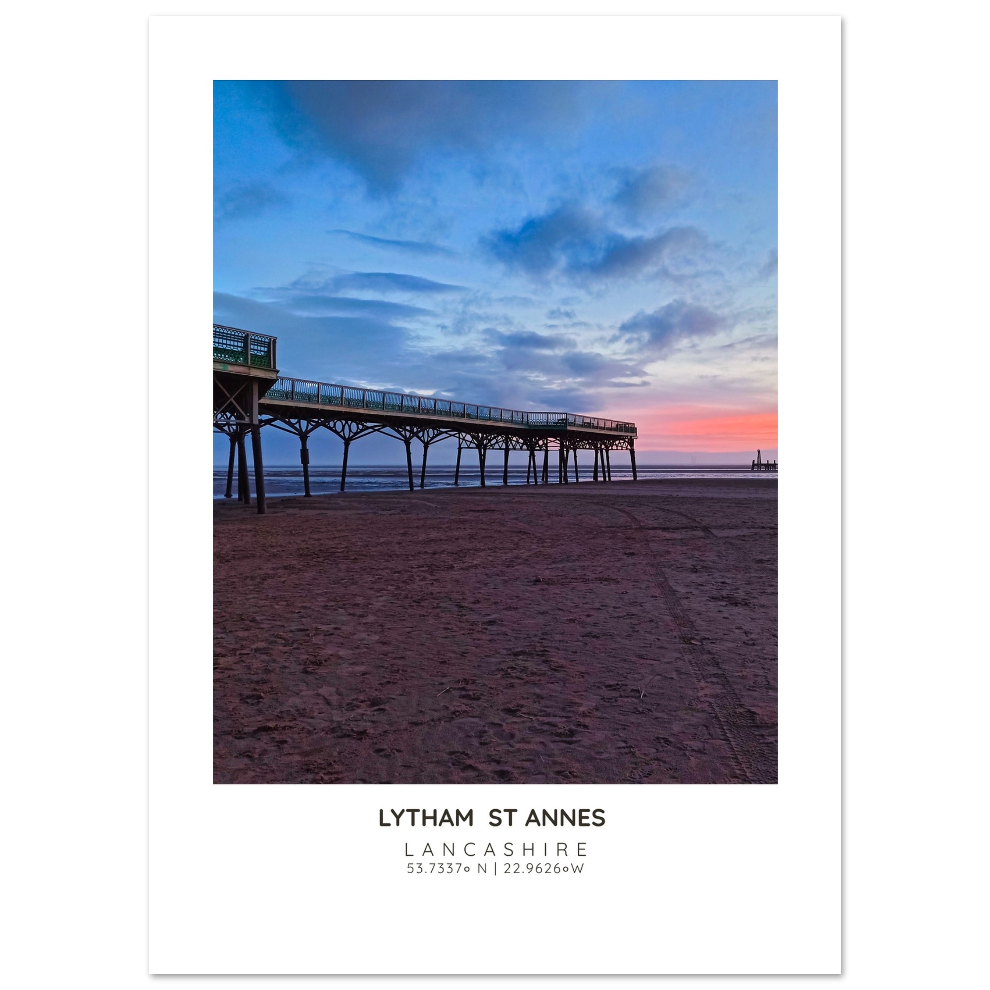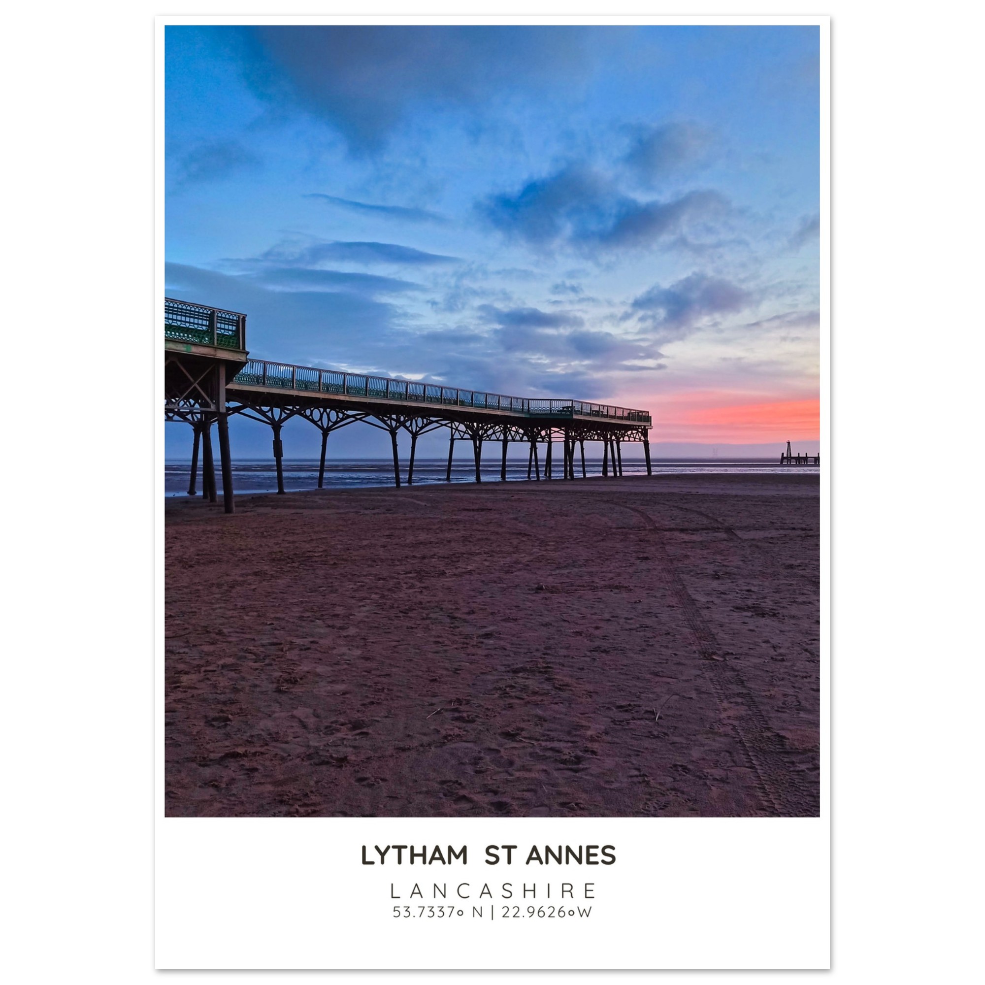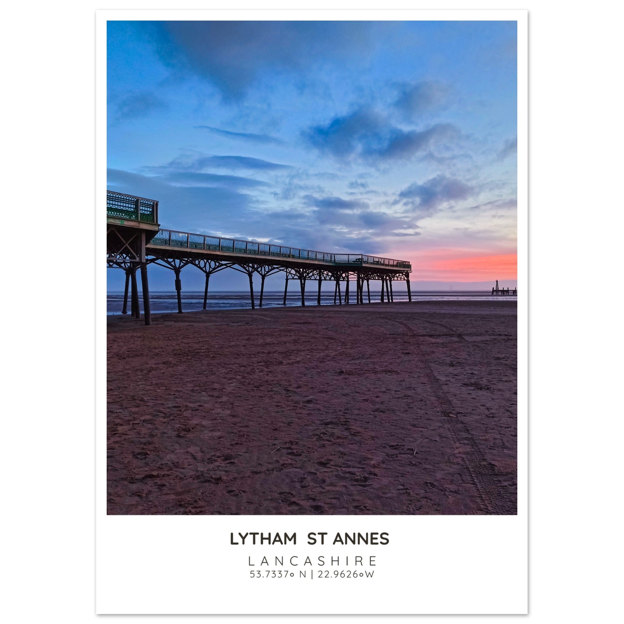 Bring the serene beauty of St Annes Pier and Beach into your home with our exquisite photographic poster. This stunning wall art captures the enchanting interplay of Lancashire’s vibrant sky and tranquil waters, making it a perfect addition to any coastal-themed decor. Whether you’re looking to brighten up your living room, bedroom, or hallway, this print adds a touch of elegance and seaside charm to your space.