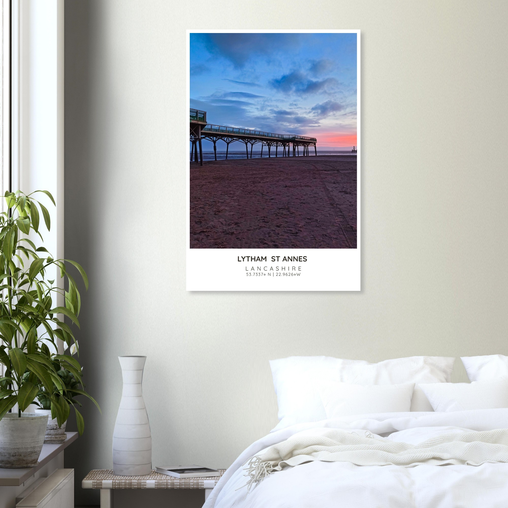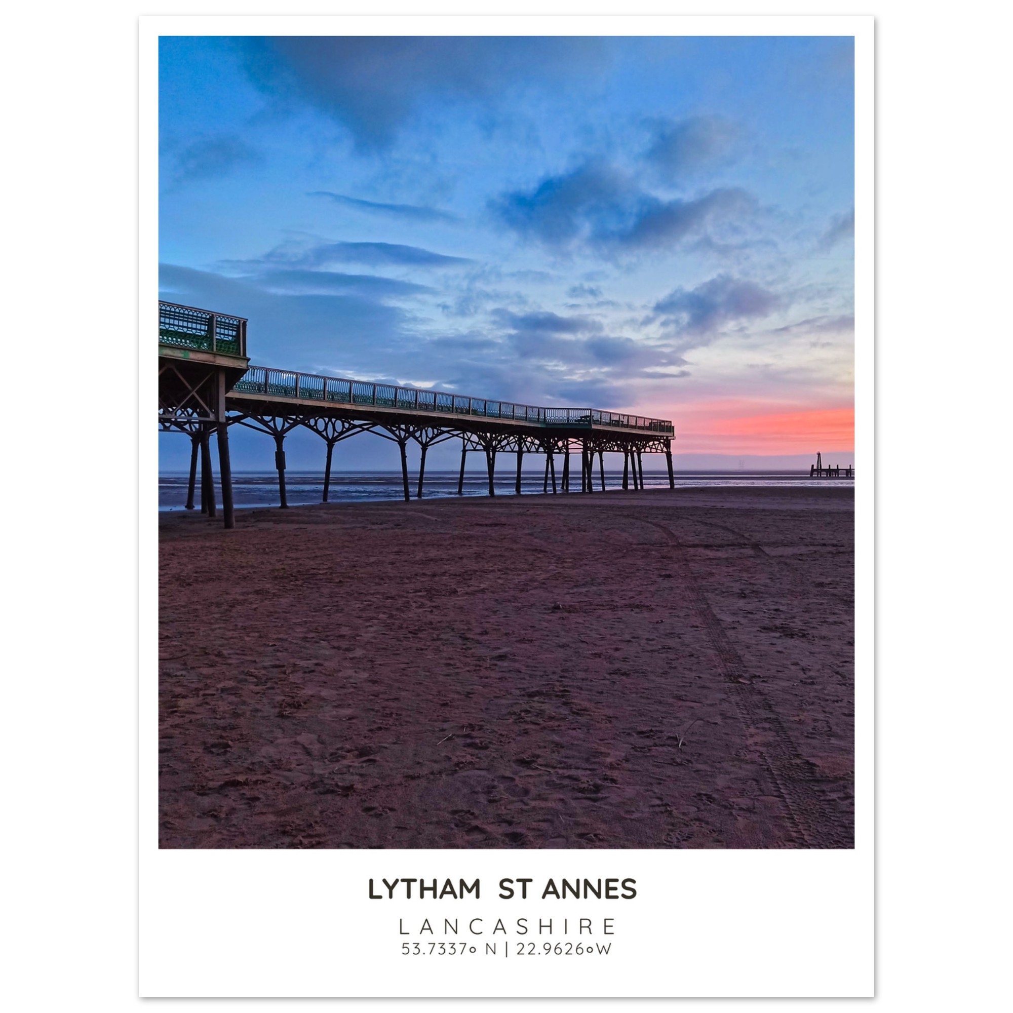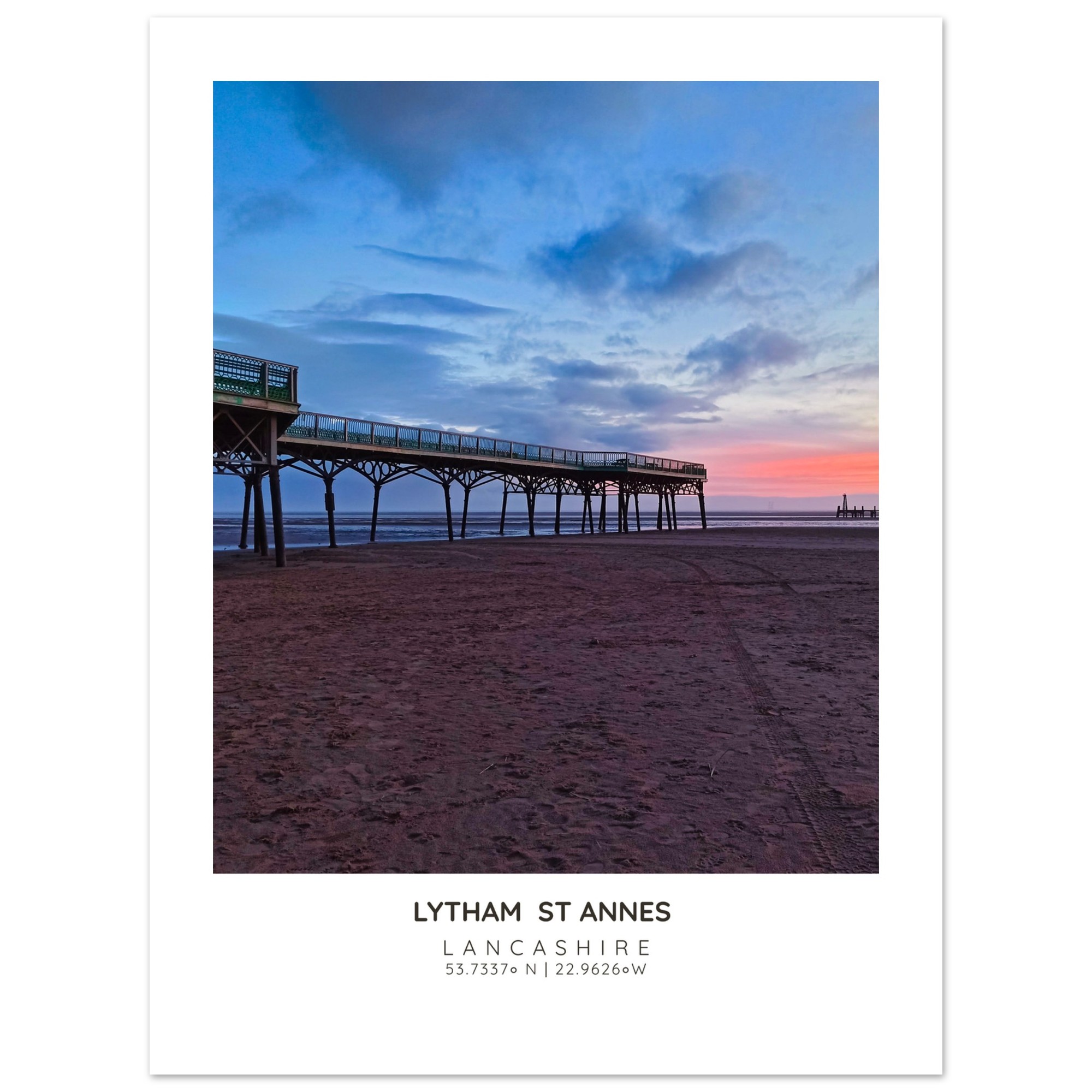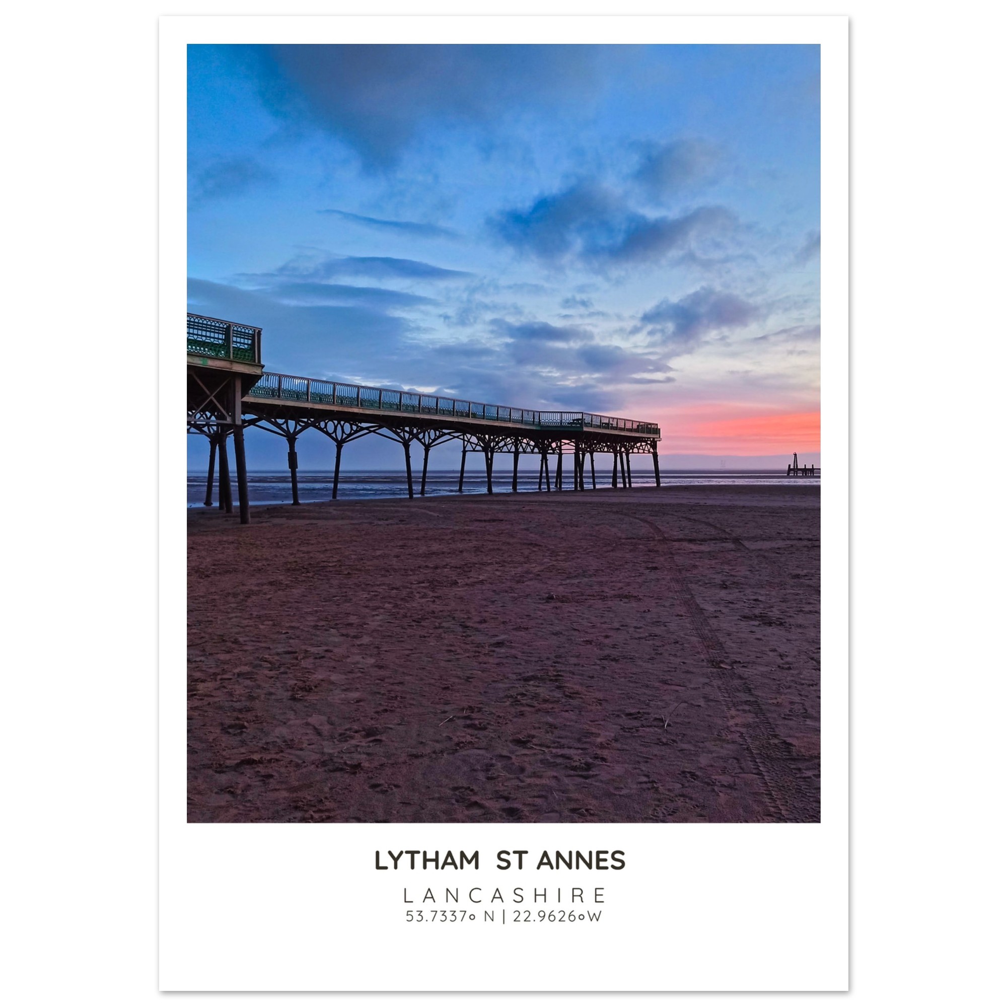 Bring the serene beauty of St Annes Pier and Beach into your home with our exquisite photographic poster. This stunning wall art captures the enchanting interplay of Lancashire’s vibrant sky and tranquil waters, making it a perfect addition to any coastal-themed decor. Whether you’re looking to brighten up your living room, bedroom, or hallway, this print adds a touch of elegance and seaside charm to your space.